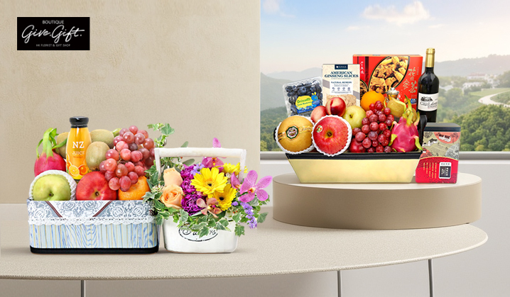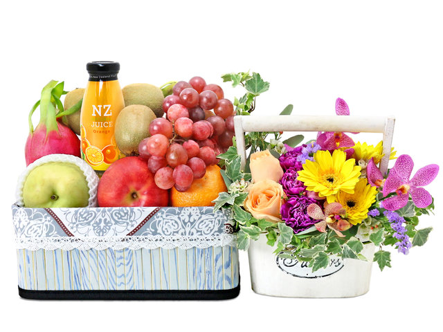 < Fruit Hamper With Flowers G28$645 HKD